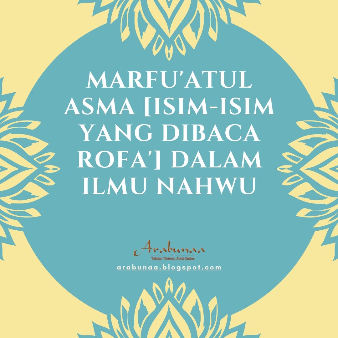 ![MARFUATUL ASMA [مَرْفُوْعَةُ الأسْمَاءِ] (Isim-Isim yang Dibaca Rofa) dalam Ilmu Nahwu MARFUATUL ASMA [مَرْفُوْعَةُ الأسْمَاءِ] (Isim-Isim yang Dibaca Rofa) dalam Ilmu Nahwu](https://blogger.googleusercontent.com/img/b/R29vZ2xl/AVvXsEiAd99hh4tLyXMb75Qse1-K1ju3M_CkAtWgnNX3RV16KJwb6qHwqAgJvheZ-LQ-pQNKIFma_goft7Bh8mf3L4PpkcpXxnTzQ1AkFHS3X9KmkW7MTLDLtjEvoNqTaPb4pJeqn2F0QKgCO2bD/w400-h400/isim-isim+yang+dibaca+rofa.jpg)